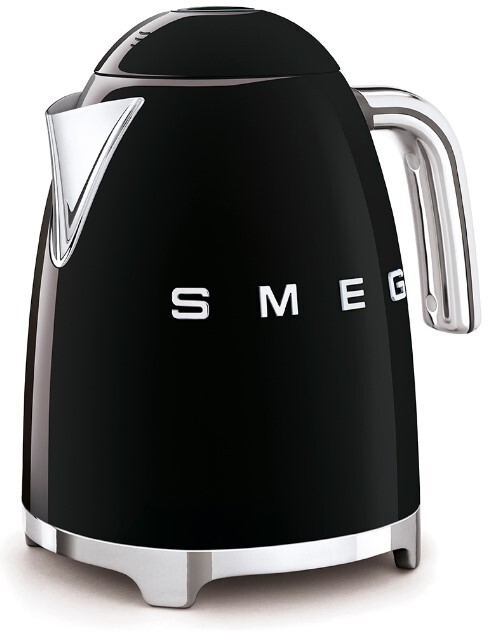 Smeg KLF03BLEU — электрический чайник в стиле 1950-х черного цвета. Этот прибор создан путём соединения классического стиля, инновационных технических решений и внимания к деталям. Поскольку в данной линейке выпущено немало мелкой и крупной бытовой техники, то чайник идеально сочетается с другими продуктами модельного ряда и даже сам по себе способствует созданию атмосферы стиля на кухне.