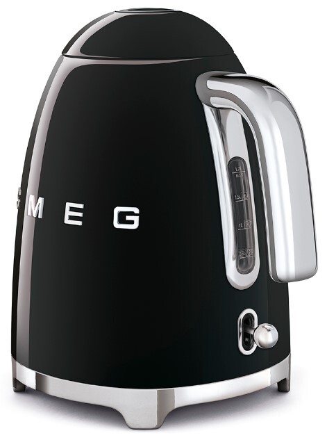 Smeg KLF03BLEU — электрический чайник в стиле 1950-х черного цвета. Этот прибор создан путём соединения классического стиля, инновационных технических решений и внимания к деталям. Поскольку в данной линейке выпущено немало мелкой и крупной бытовой техники, то чайник идеально сочетается с другими продуктами модельного ряда и даже сам по себе способствует созданию атмосферы стиля на кухне.
