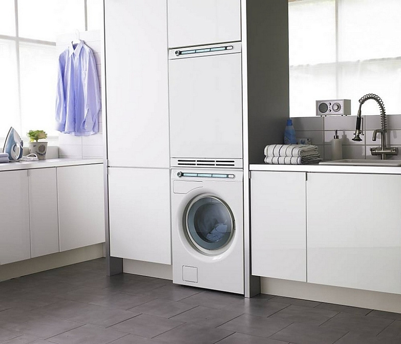 Может использоваться совместно со стиральными и сушильными машинами, Устанавливается между стиральной и сушильной машинами при установке их в колонну