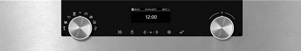 У этой модели есть 4 уровня приготовления пищи, 11 режимов нагрева. Максимальный — 250 градусов. Также у неё имеется 120 встроенных автоматических программ для готовки различных блюд, что значительно упрощает процесс. В их числе гриль с работой вентилятора. Чтобы внимательно следить за продуктами в духовке есть двухстороннее освещение, благодаря которому каждый уголок внутреннего пространства отчётливо виден. Все данные о работе устройства выводятся на TFT дисплей.