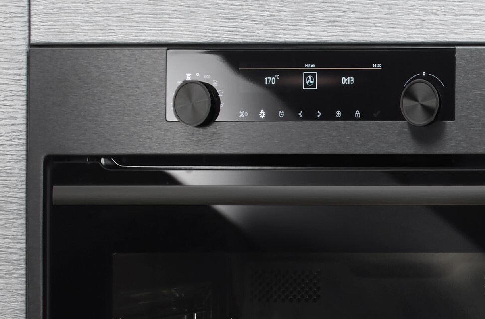 Шкаф выполнен в черном цвете, который идеально впишется в любой интерьер, а серебристая фурнитура придает ему изысканный вид. Управление производится с помощью поворотных переключателей и сенсорных кнопок, что делает процесс приготовления еще более комфортным. Дисплей на передней панели позволяет легко отслеживать процесс приготовления и устанавливать необходимые параметры.