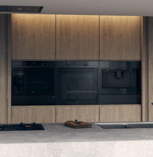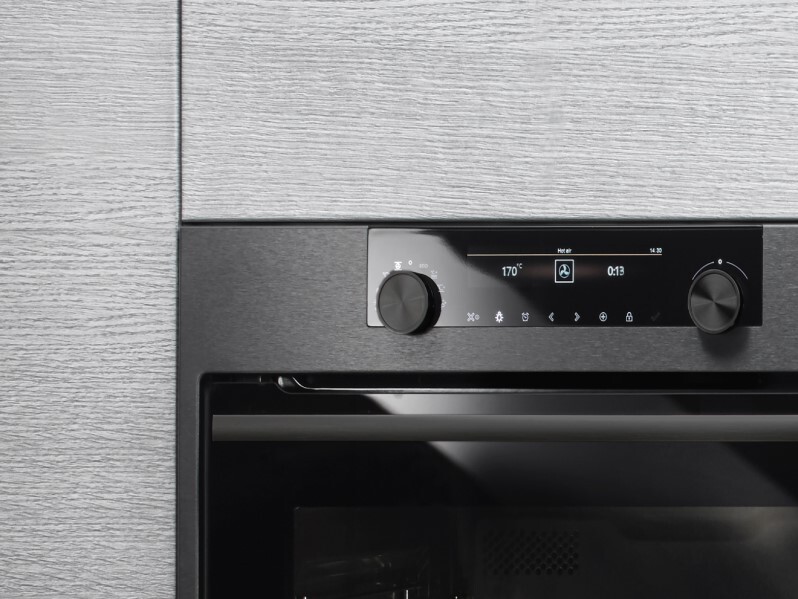 Цельная фасадная рама для уникального монтажа, Сдвоенный верхний нагревательный элемент, Эргономичная ручка выбора программ, Ручка jog-dial для установки параметров, Пошаговое приготовление, Дверца UltraCoolDoorQuadro+: 4 стекла + 2 термослоя, Цвет: Black Steel