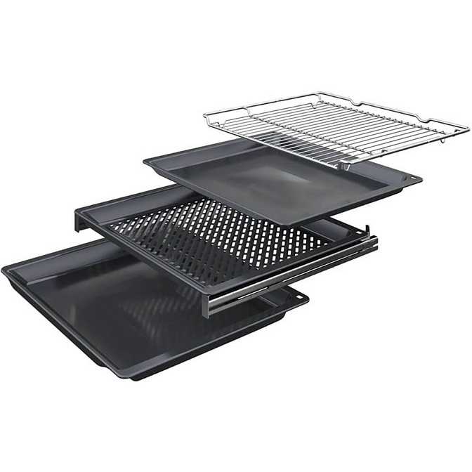 Духовой шкаф Bosch HRG978NB1 оснащен современными технологиями и большим набором функций для удобного приготовления. Система Home Connect позволяет управлять устройством через приложение или голосового помощника. Телескопические направляющие на одном уровне обеспечивают безопасное использование противней. Технология 4D HotAir распределяет тепло по всем уровням, а режим PulseSteam с добавлением пара помогает сохранять сочность блюд и улучшает выпечку. Автоматические программы с датчиком PerfectBake и термощупом PerfectRoast контролируют процесс приготовления и делают его максимально точным. Для ухода предусмотрена пиролитическая очистка и гидролитическая функция. Управление реализовано через TFT-дисплей с кольцом настройки, дверца открывается и закрывается мягко и бесшумно.