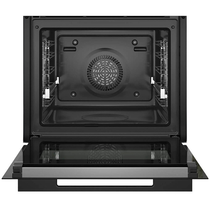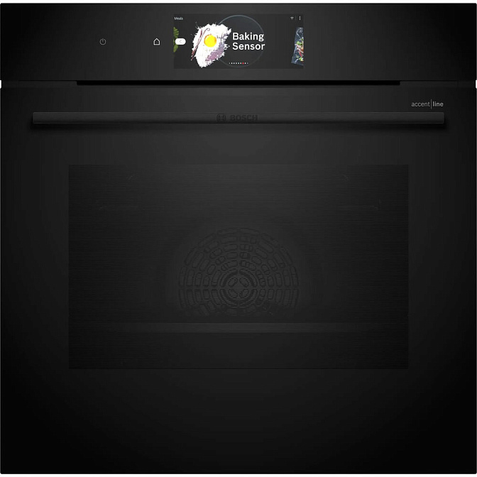 Bosch HRG978NB1 — духовой шкаф из линейки Serie 8 с объемом 71 литр и современным управлением через сенсорный TFT-дисплей. Модель поддерживает систему Home Connect, что позволяет управлять устройством со смартфона или голосового помощника.