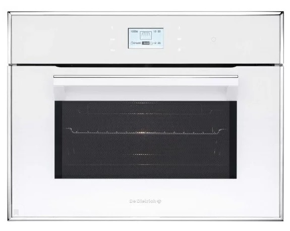 Духовой шкаф De Dietrich DOM1195B с функцией СВЧ (40л.) в безукоризненно белом цвете и фурнитурой из хромированной стали, непременно станет главным кулинаром на Вашей кухне. Три программы памяти и кулинарная книга на 11 рецептов обеспечивают успешное приготовление любимых блюд. Семь программ размораживания позволяют подобрать оптимальную температуру разморозки продуктов.
