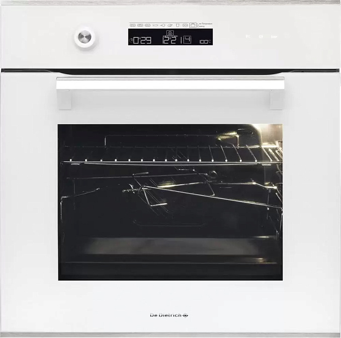 Духовой шкаф De Dietrich DOP6557W жемчужного белого цвета из серии Multifunction Plus имеет 9 режимов приготовления. Переключатель Twin с белой светодиодной подсветкой делает управление интуитивно понятным. Удобная функция пиролиза превратит очистку техники в простой и быстрый процесс.