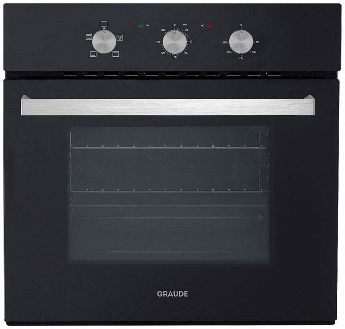 Модель представлена с механическим управлением. Три поворотных регулятора утапливаются внутрь корпуса, что смотрится стильно и практично в плане ухода за фасадом. Ручки не нагреваются во время работы, легко вращаются в разные стороны и хорошо фиксируются на выбранном параметре. У каждого из регуляторов имеется графическая подсказка. Наличие таймера с отключением расширяет функциональные возможности духового шкафа грауде BE 60.0 S. Модель оборудована дверкой с двойным остеклением, что позволяет хорошо поддерживать температуру внутри камеры, а также не допускать перегрева с внешней стороны.