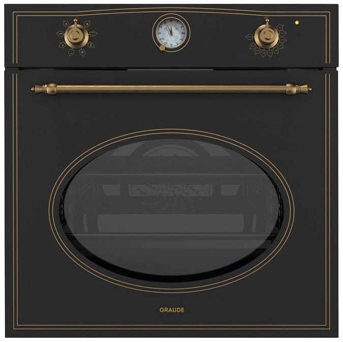 Духовой шкаф Graude BK 60.1 SM — незаменимый помощник в процессе приготовления пищи. Классический дизайн в черном исполнении дополнен элегантной фурнитурой. Центральное положение на панели управление занимает аналоговый циферблат с таймером. Выбрать режим нагрева или температуру можно при помощи механических регуляторов. Специальные графические подсказки создают дополнительный комфорт при пользовании духовкой. Ручки не нагреваются во время работы изделия. Высота модели составляет 59.5 см, ширина — 59.5 см, глубина — 58.3 см. Стандартный размер подойдет в большинство ниш для встраивания.