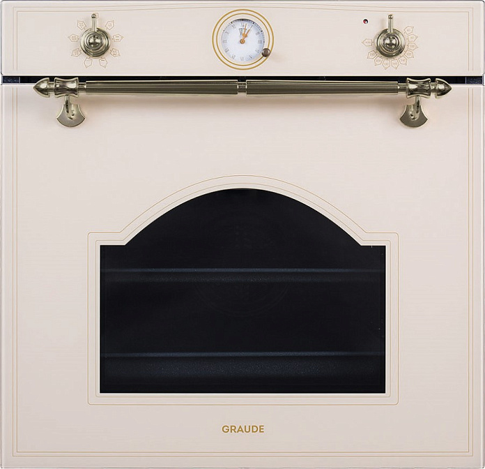 Духовой шкаф Graude BK 60.3 EL — электрическая модель в античном белом цвете. Изысканный цвет дополнен фурнитурой в бронзовом исполнении. Элегантные ручки смотрятся эффектно и стильно. Они не нагреваются во время работы устройства, даже при максимальной температуре, обеспечивая дополнительную безопасность при эксплуатации. Модель снабжена поворотными регуляторами и аналоговыми часами с функцией таймера. На фасаде предусмотрены специальные графические подсказки для комфортной настройки параметров работы.