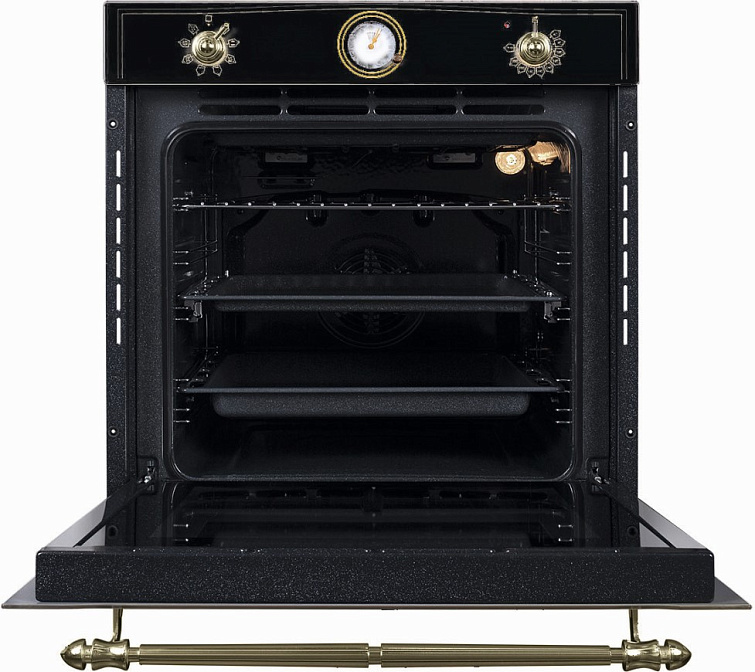 Духовой шкаф Graude BK 60.3 S — модель в черном исполнении с грилем и конвекцией. Изделие снабжено поворотными регуляторами в контрастном бронзовом цвете и аналоговыми часами с функцией таймера. Фурнитура отличается качеством и легкостью в обслуживании. Ручки не нагреваются во время работы устройства. Духовку отличает внимание к деталям. Например, подсказки для регуляторов сделаны элегантно и стильно, подчеркивают стиль модели.