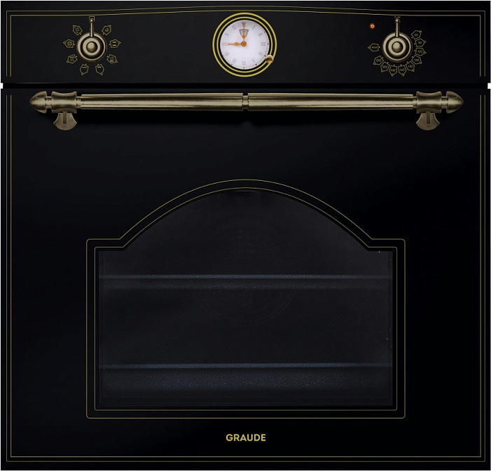 Духовой шкаф Graude BK 60.3 S — модель в черном исполнении с грилем и конвекцией. Изделие снабжено поворотными регуляторами в контрастном бронзовом цвете и аналоговыми часами с функцией таймера. Фурнитура отличается качеством и легкостью в обслуживании. Ручки не нагреваются во время работы устройства. Духовку отличает внимание к деталям. Например, подсказки для регуляторов сделаны элегантно и стильно, подчеркивают стиль модели.