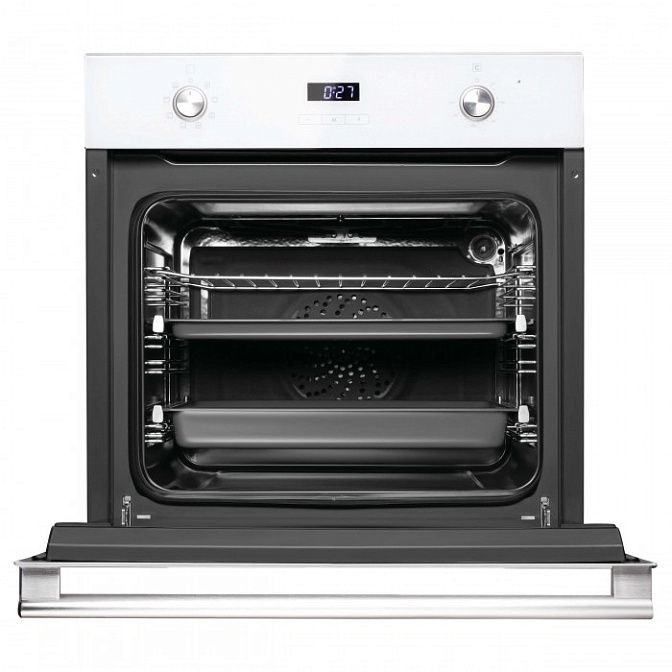 Korting OKB 792 CFW — стильный духовой шкаф серии «Crystal» с фронтом из белого стекла. Дисплей ColdWhite хорошо виден под любым углом, что повышает комфорт использования. Конструкция данной модели предусматривает режим «горячий воздух» для одновременного приготовления на нескольких уровнях. Эмаль MetallicGrey легко очищается от бытовых загрязнений и повышает удобство обслуживания. Телескопические направляющие надежно удерживают противень на двух уровнях.