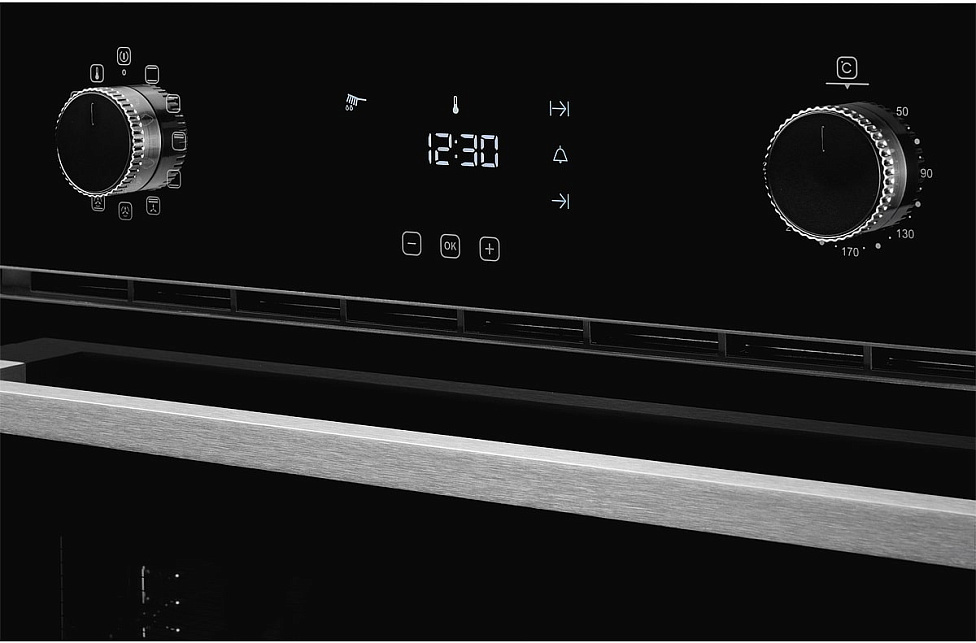 Поворотные переключатели, Таймер: сенсорный, мультифункциональный, Сенсорный/светодиодный дисплей, Направляющие для противней: хромированные, съемные, Фасад: стеклянный, Режим очистки, Потребление энергии за цикл в обычном режиме: 0,81 кВтч, Размер ниши для встраивания под столешницу (ВхШхГ), мм: 600х560х580, Размер ниши для встраивания в колонну (ВхШхГ), мм: 590х560х580