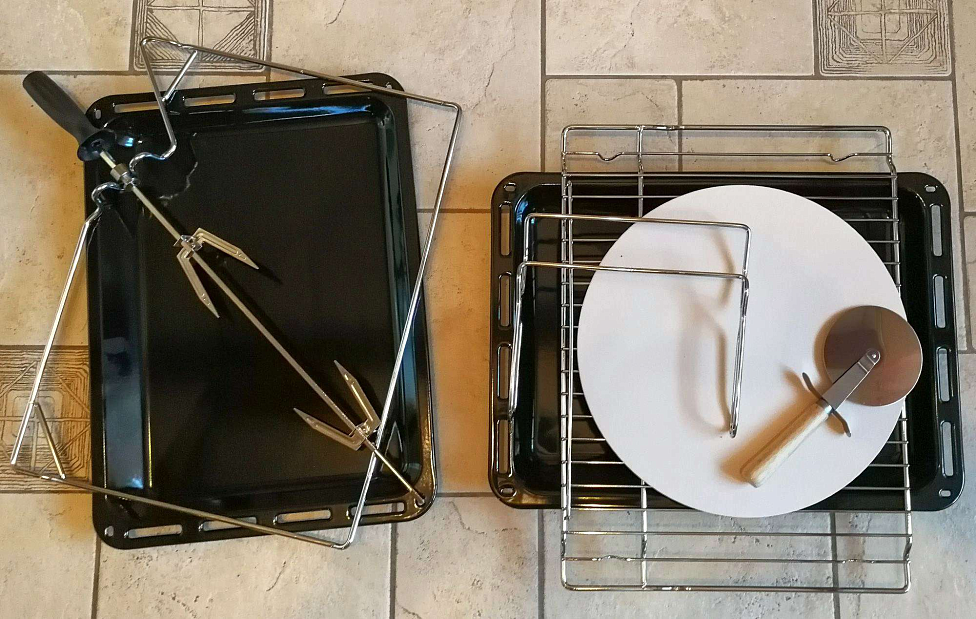 Решетка, Противень глубиной 45 мм, Телескопические направляющие, Ручка для противня, Камень для пиццы, Нож для пиццы