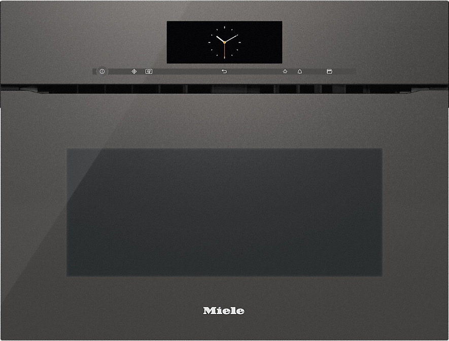 Компактный духовой шкаф с СВЧ от Miele. Прибор в графитовом сером цвете гармонично впишется в современный интерьер. В модели предусмотрено более 100 автоматических программ, и возможность внести в память прибора до 20 собственных рецептов.