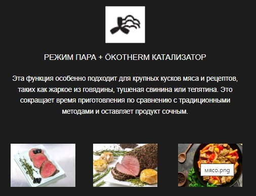 Режим пара + ökotherm катализатор, Комбинированное приготовление на пару, Турбо-режим с паром