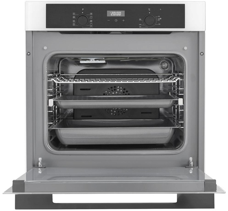 Фронтальная панель духового шкафа Кертинг OKB 691 CSGW выполнена из металла и стекла в белом цвете с черной фурнитурой, такая техника станет стильным дополнением в любом интерьере. Панель управления оформлена сенсорными кнопками и информативным дисплеем. Предусмотрен электронный таймер с отключением и возможностью отсрочки старта. Пользователю доступно 9 режимов нагрева. При активации турборежима горячий воздух поднимается от центрального нагревателя и распределяется по всей камере с одинаковой интенсивностью.