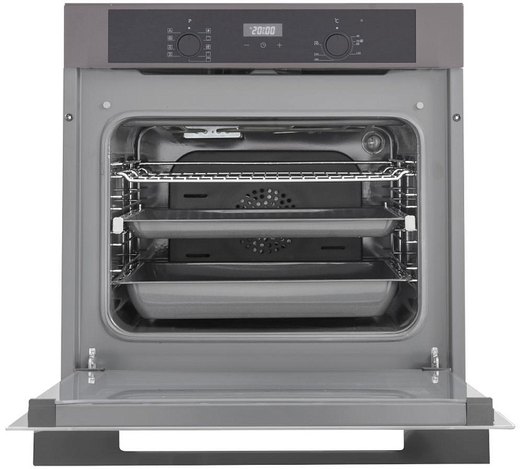 Фронтальная панель духового шкафа Кертинг OKB 691 CSX выполнена из металла и стекла в черном цвете с фурнитурой в цвете нержавеющая сталь, такая техника станет стильным дополнением в любом интерьере. Панель управления оформлена сенсорными кнопками и информативным дисплеем. Предусмотрен электронный таймер с отключением и возможностью отсрочки старта. Пользователю доступно 9 режимов нагрева. При активации турборежима горячий воздух поднимается от центрального нагревателя и распределяется по всей камере с одинаковой интенсивностью.