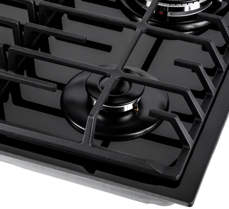Сплошное крестообразное соединение над всеми конфорками, позволяет использовать посуду любого диаметра