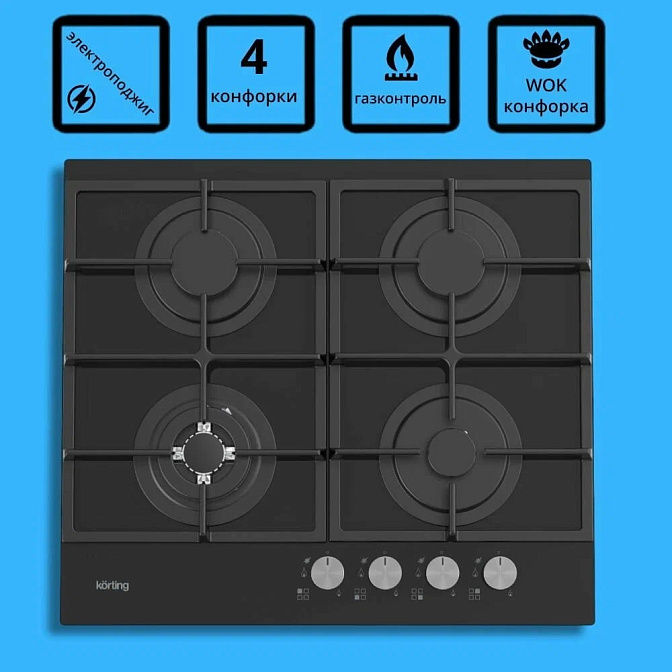 Газовая стеклянная варочная панель Korting HGG 6722 CTN – купить за 20 000 ₽ | Магазин Бытовой Техники