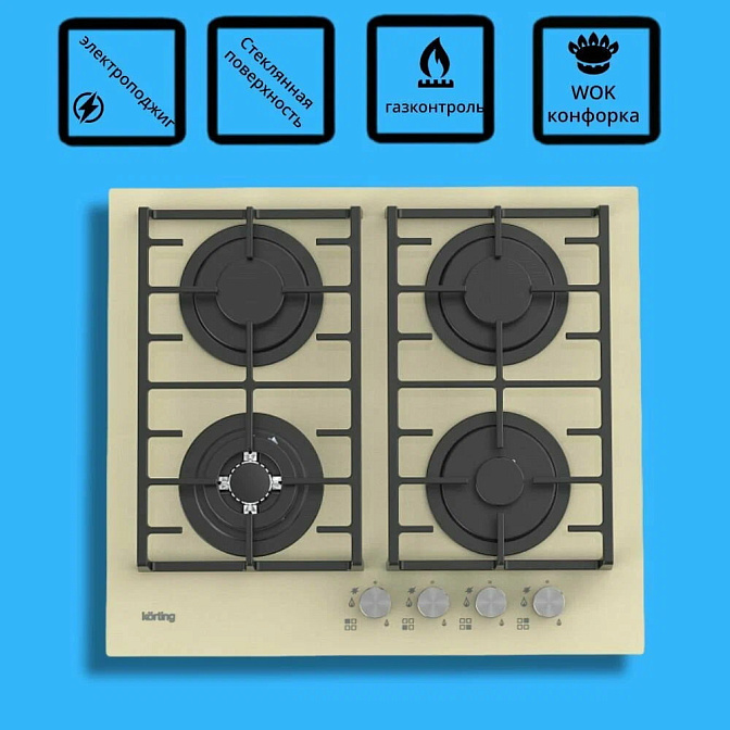 Газовая газовая стеклянная варочная панель Korting HGG 6825 CTB снабжена 4 конфорками. Тип нагревательных зон — газовые. Высота модели составляет 4.6 см, ширина — 59 см, глубина — 52 см. Материал поверхности — стекло, благодаря чему она легко очищается от жирного налета и других загрязнений. Комфортную эксплуатацию прибора гарантирует механическое управление. Также здесь есть газ-контроль, автоподжиг горелок автоматический. Основной цвет данного устройства — бежевый, что служит его сочетанию с кухонным интерьером в любом стиле: от современного до ретро и классики. Универсальный дизайн и независимый тип установки обеспечивают гибкие условия монтажа этой варочной панели.
