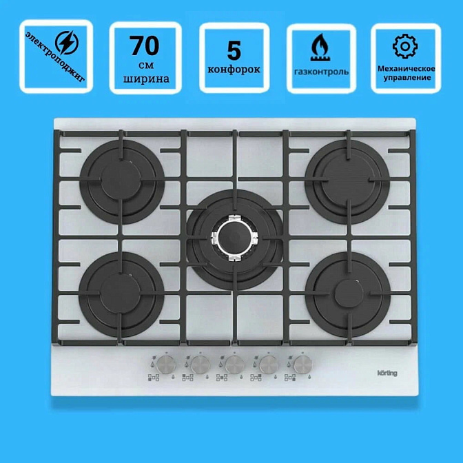 Газовая стеклянная варочная панель Korting HGG 7835 CTW – купить за 34 400 ₽ | Магазин Бытовой Техники