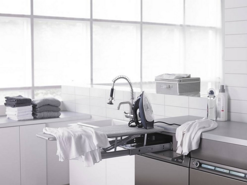Выдвижная гладильная доска Asko HI 1152 W используется совместно со стиральными и сушильными машинами из серии Line Series. Благодаря своей конструкции, она не занимает отдельное место в доме, а размещается между установленными друг на друга моделями.