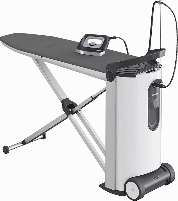 Miele B 1847 FashionMaster — гладильная система, многократно упрощающая процесс глажки. Складная конструкция и автосматывание шнура позволяет быстро собрать и компактно хранить устройство. Прибор укомплектован дугой для глажки рубашек и костюмов, удобным съемным резервуаром для воды, а также оснащен резиновыми роликами и бамперами, защищающими напольное покрытие.