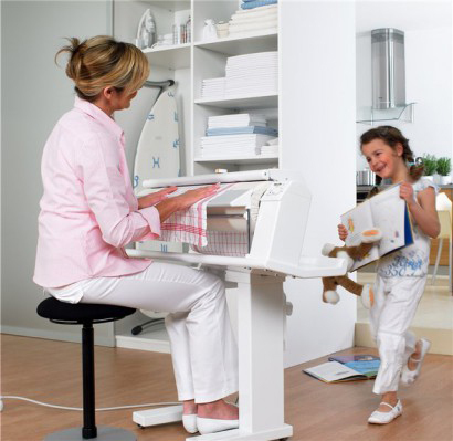 Профессиональная гладильная машина Miele HM 16-83 справится с любым объемом работы. Производительность гладильной машины составляет 15 килограмм в час при средней влажности белья 20 процентов. Температура плавно регулируется при помощи ручки на панели управления.