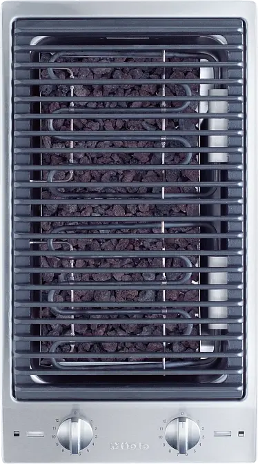 Miele CS1312 BG — встраиваемый электрогриль из нержавеющей стали. Модель оборудована двумя независимыми нагревательными элементами, которые регулируются поворотными переключателями. Индикатор мощности нагрева способствует безопасной эксплуатации. Модель имеет 12-ступенчатую регулировку температуры. Для удобства использования панель поставляется с щеткой для чистки и лавовыми камнями.