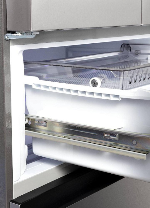 Холодильник Korting KNFF 82535 XN с 3 камерами выполнен в стиле современный, цвет фронтальной поверхности — черная нержавеющая сталь. Этот отдельностоящий прибор станет оптимальным решением для качественного хранения продуктов. Высота модели составляет 193 см, ширина — 85 см, глубина — 69 см. Благодаря системе NoFrost на внутренних стенках не образуется льда и инеевого налета, поэтому такой агрегат не нужно размораживать вручную. Высокий класс энергоэффективности A+ гарантирует экономичное потребление электроэнергии.