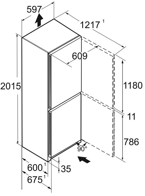 Ступенчатая регулировка по высоте полок на дверце, Сухая задняя панель из пластмассы, Тип штекера: Евро, Телескопические направляющие: частично выдвигаемые