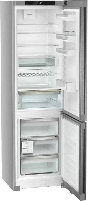 Холодильник Liebherr CNSDB 5223 относится к классу Plus, сочетая в себе комфорт и премиум-качество. Она входит в линейку BluPerformance и обладает рядом превосходных характеристик. Серебристый корпус из стали и двери из нержавеющей стали придают этому холодильнику с морозильником современный и стильный вид. Обработка SmartSteel препятствует появлению отпечатков пальцев, поддерживая идеальный вид прибора. Ручка двери выполнена в вертикальной форме, что обеспечивает удобство использования. Двери имеют доводчик SoftSystem и могут быть перевешены для удобства размещения в кухонном пространстве.