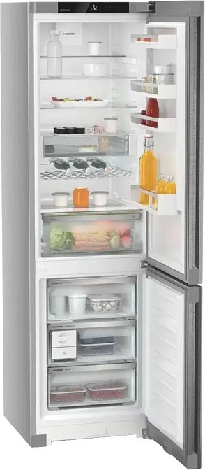 Холодильник Liebherr CNSDB 5223 относится к классу Plus, сочетая в себе комфорт и премиум-качество. Она входит в линейку BluPerformance и обладает рядом превосходных характеристик. Серебристый корпус из стали и двери из нержавеющей стали придают этому холодильнику с морозильником современный и стильный вид. Обработка SmartSteel препятствует появлению отпечатков пальцев, поддерживая идеальный вид прибора. Ручка двери выполнена в вертикальной форме, что обеспечивает удобство использования. Двери имеют доводчик SoftSystem и могут быть перевешены для удобства размещения в кухонном пространстве.
