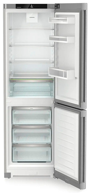 Холодильник Liebherr CNSDC 5203 является высококачественной моделью. Этот двухкамерный холодильник с морозильником из серии Pure и линейки BluPerformance обладает стильным серебристым дизайном и удобной вертикальной ручкой, которая гармонично сочетается с общим внешним видом. Корпус изготовлен из стали, двери из нержавеющей стали, обработанные по технологии SmartSteel, что препятствует оставлению отпечатков пальцев. Двери имеют доводчик SoftSystem и могут быть перевешены по желанию пользователя. Управление холодильником осуществляется с помощью сенсорных элементов и электронной системы управления с ЖК-дисплеем, расположенной за дверью. В наличии технология SmartDevice-Box и множество индикаторов, включая режимы SuperCool и SuperFrost, защиту от детей, режим отпуска, отключение питания и температуру холодильной и морозильной камер.