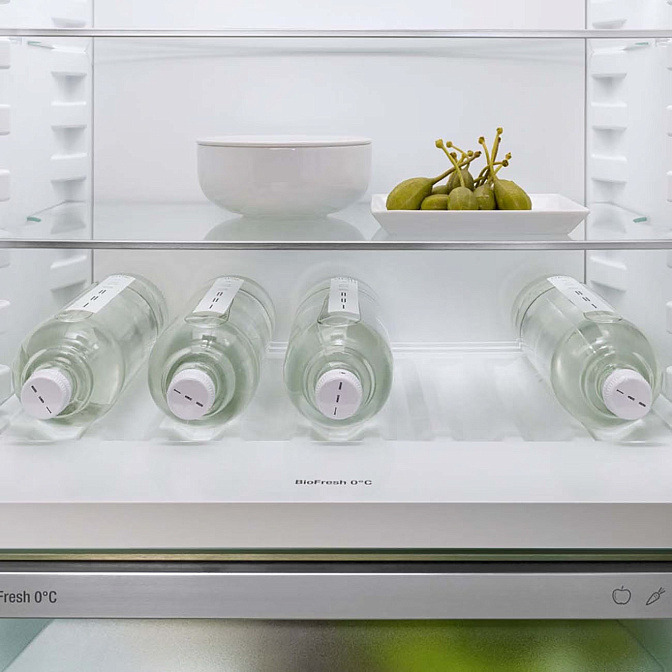 В холодильной камере кроме полок находятся зона BioFresh с двумя контейнерами общим объёмом 74 л для фруктов и мясомолочных продуктов. В них поддерживается сухой воздух и температура около нуля градусов.