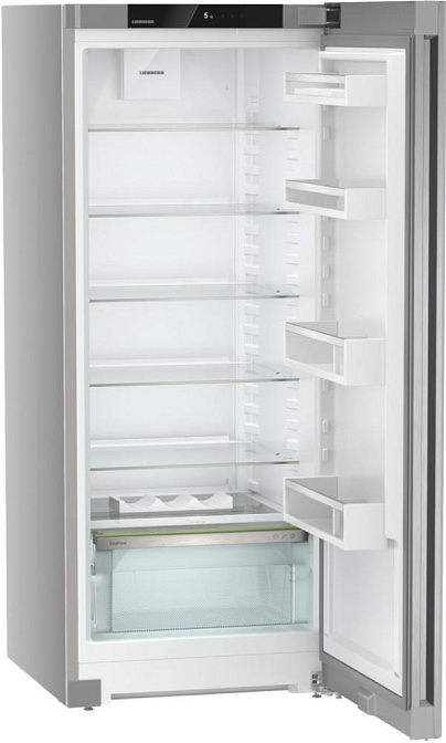 Холодильник Liebherr RSFD 4600 Pure, произведенный в Болгарии, является прекрасным примером высококачественной бытовой техники. Серия Pure и линейка BluPerformance отличаются превосходным исполнением и продуманным дизайном, что делает этот холодильник идеальным выбором для любой кухни. Дизайн холодильника выполнен в утонченном серебристом цвете, что придает ему современный и стильный вид. Материал корпуса — сталь, а дверь покрыта под нержавеющую сталь, что обеспечивает долговечность и надежность. Ручка двери скрыта, что добавляет элегантности внешнему виду. Дверной упор расположен справа, но при необходимости двери могут быть перевешены. Внутреннее пространство холодильника тщательно продумано для удобства использования. Система размораживания автоматическая, что существенно упрощает уход за устройством. Циркуляционное охлаждение PowerCooling и автоматический режим SuperCool обеспечивают быстрое и равномерное охлаждение продуктов. Вместительность холодильной камеры составляет 296 литров, что позволяет хранить большое количество продуктов. Холодильник оснащен шестью полками, пять из которых можно регулировать по высоте. Материал полок — стекло с металлической окантовкой, что обеспечивает их прочность и долговечность. Кроме того, в холодильнике есть отделение для бутылок, контейнер для фруктов и овощей, а также универсальная полка для бутылок. Управление холодильником осуществляется с помощью сенсорных кнопок и ЖК-дисплея, расположенных за дверью. Индикаторы позволяют контролировать включение питания, режим SuperCool, защиту от детей и температуру в холодильной камере.