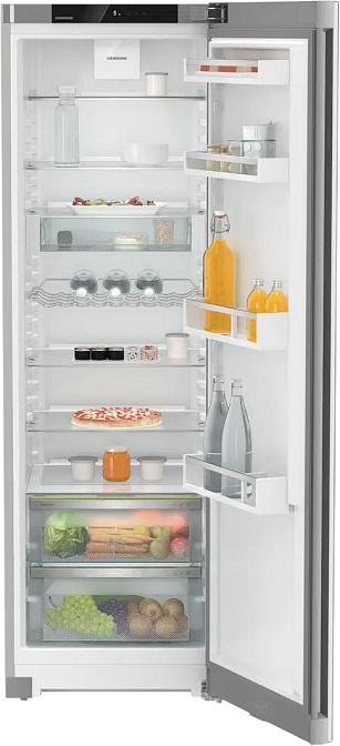 Холодильник Liebherr RSFD 5220 представляет собой однокамерное устройство без морозильника, произведенное в Болгарии. Устройство обладает высоким классом энергопотребления E, что подтверждает его энергоэффективность и экологичность. Внешний вид устройства характеризуется серебристым цветом корпуса, выполненного из стали, и двери, покрытой под нержавеющую сталь. Размеры холодильника составляют 185.5×59.7×67.5 см, что позволяет вместить внутрь 377 литров продуктов. Управление холодильником осуществляется электронно, с помощью сенсорных элементов, расположенных на панели управления за дверью. Информация о температуре в холодильной камере отображается на ЖК-дисплее. Внутреннее освещение камеры осуществляется при помощи светодиодов, что обеспечивает равномерное и яркое освещение.