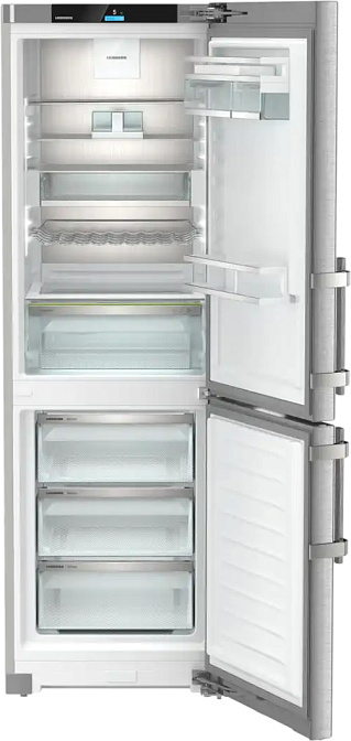 Управление осуществляется электронно с помощью 2.4-дюймового сенсорного цветного TFT-дисплея, расположенного за дверью. Это удобно и позволяет быстро настроить нужные параметры. Также присутствует технология SmartDevice-Box, которая позволяет управлять холодильником дистанционно.