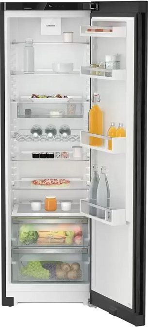 Внутреннее пространство холодильника вместительно и функционально. Полезный объем холодильной камеры составляет 398 литров. Семь полок, включая шесть регулируемых и одну складную, позволяют гибко организовать пространство под нужды пользователя. Контейнер VarioSafe и универсальная полка для бутылок обеспечивают дополнительное удобство при хранении продуктов.