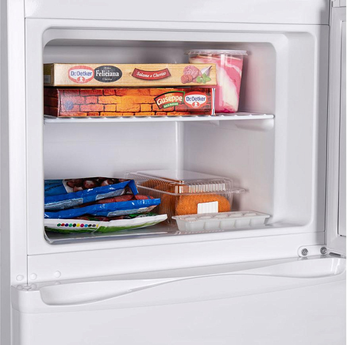 Цвет фронтальной поверхности — белый, отличает практичностью в уходе. Глянец легко очищается от разводов и отпечатков от рук. Высокий класс энергоэффективности A+ гарантирует экономичное потребление электроэнергии. В холодильной камере располагаются три регулируемые по высоте полки и одна фиксированная. Пользователь может создать идеальное пространство под свои запросы. Вместительный бокс для овощей и фруктов — снизу. Прочный пластик выдерживает большие нагрузки и отличается устойчивостью к образованию царапин. В морозилке — одна полка, что так же удобно для организации раздельного хранения продуктов. Автоматическое размораживание — одно из основных преимуществ. Внутри не образуется льда и снега, что обеспечивает комфорт при обслуживании прибора.