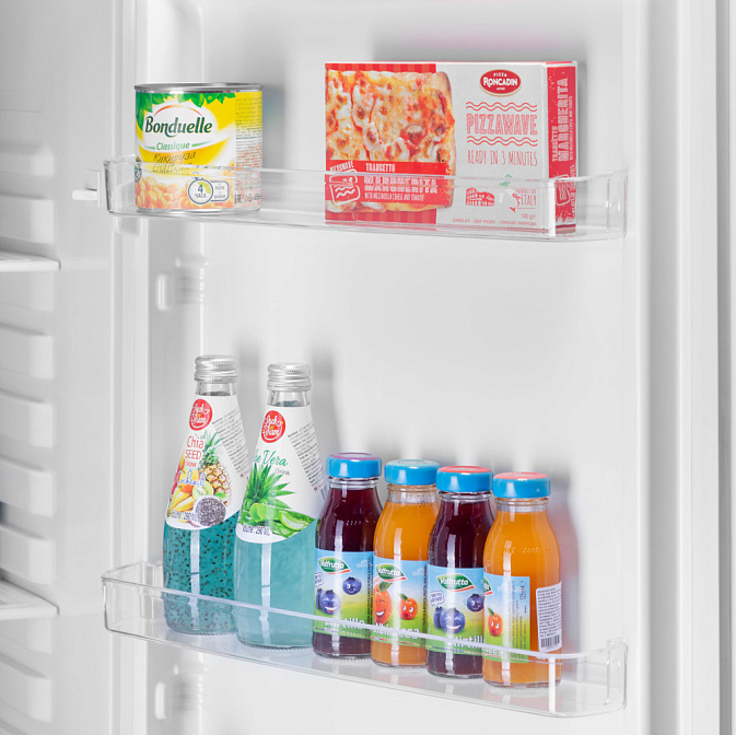 Высота модели составляет 168 см, ширина — 54.5 см, глубина — 54.5 см. Пользователь может по-своему расположить полки, так как они регулируются по высоте. Во вместительном боксе удобно хранить овощи или фрукты. На двери также организованы балконы, в которых удобно располагать, например, бутылки и другие упаковки. Высокий класс энергоэффективности A+ гарантирует экономичное потребление электроэнергии, а низкий уровень шума не создает дискомфорт во время работы, поэтому устройство можно расположить даже в кухнях-гостиных.