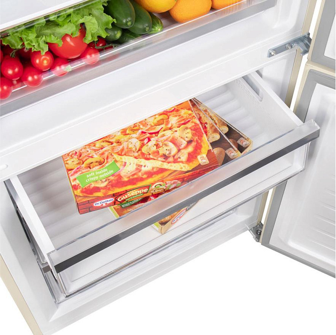 Холодильник Maunfeld MFF1857NFBG с 2 камерами выполнен в стиле современный, цвет фронтальной поверхности — бежевый. Этот отдельностоящий прибор станет оптимальным решением для качественного хранения продуктов. Высота модели составляет 185 см, ширина — 70.3 см, глубина — 70.3 см. Для фруктов и овощей имеется специальная зона свежести. Благодаря системе NoFrost на внутренних стенках не образуется льда и инеевого налета, поэтому такой агрегат не нужно размораживать вручную. Наличие режима “Отпуск”, расширяет функционал модели. Высокий класс энергоэффективности A++ гарантирует экономичное потребление электроэнергии.