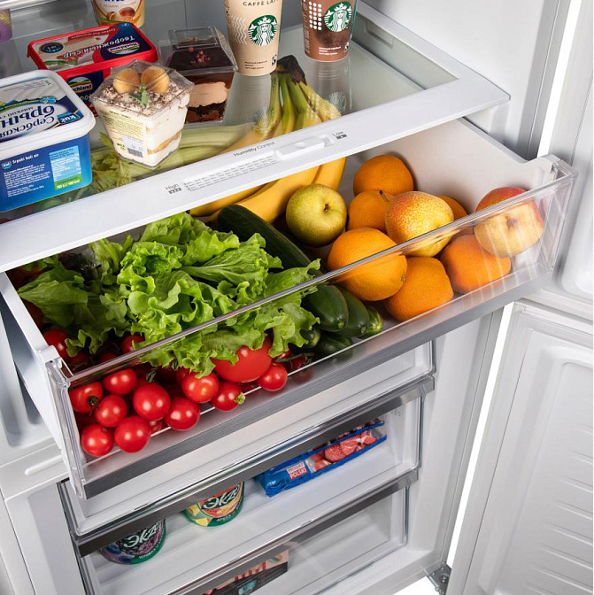 Холодильник Maunfeld MFF1857NFW с 2 камерами выполнен в стиле современный, цвет фронтальной поверхности — белый. Этот отдельностоящий прибор станет оптимальным решением для качественного хранения продуктов. Высота модели составляет 185.5 см, ширина — 70.3 см, глубина — 70.3 см. Для фруктов и овощей имеется специальная зона свежести. Благодаря системе NoFrost на внутренних стенках не образуется льда и инеевого налета, поэтому такой агрегат не нужно размораживать вручную. Наличие режима “Отпуск”, расширяет функционал модели. Высокий класс энергоэффективности A++ гарантирует экономичное потребление электроэнергии.
