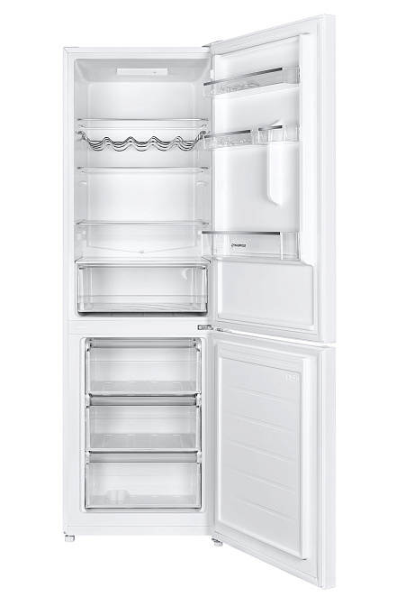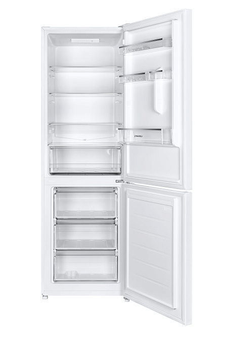 В морозильном отделении холодильника Манфелд MFF185SFW три вместительных ящика. Они легко выдвигаются, а прозрачный пластик обеспечивает хороший обзор содержимого. Сигнализация открытой двери оповещает пользователя о том, что она открыта. Это важно для того, чтобы не допустить перепада температур и, как следствие, поломки прибора. Внутри предусмотрено освещение, которое включается автоматически.