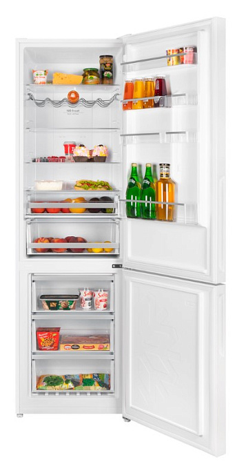 Холодильник Maunfeld MFF200NFWE с 2 камерами выполнен в стиле современный, цвет фронтальной поверхности — белый. Этот отдельностоящий прибор станет оптимальным решением для качественного хранения продуктов. Высота модели составляет 200 см, ширина — 59.5 см, глубина — 60 см. Для фруктов и овощей имеется специальная зона свежести. Благодаря системе NoFrost на внутренних стенках не образуется льда и инеевого налета, поэтому такой агрегат не нужно размораживать вручную. Наличие режима “Отпуск”, блокировки от детей расширяет функционал модели. Высокий класс энергоэффективности A+ гарантирует экономичное потребление электроэнергии.