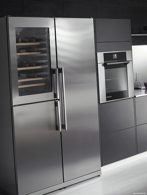 Холодильник Side by Side отвечает самым высоким эстетическим и функциональным запросам. De Dietrich PSS312 представляет собой уникальную конструкцию, сочетающую в себе три отделения (холодильник+морозильник+винный шкаф). Каждая камера снабжена электронной панелью управления с цифровым дисплеем для доступа к имеющимся функциям.