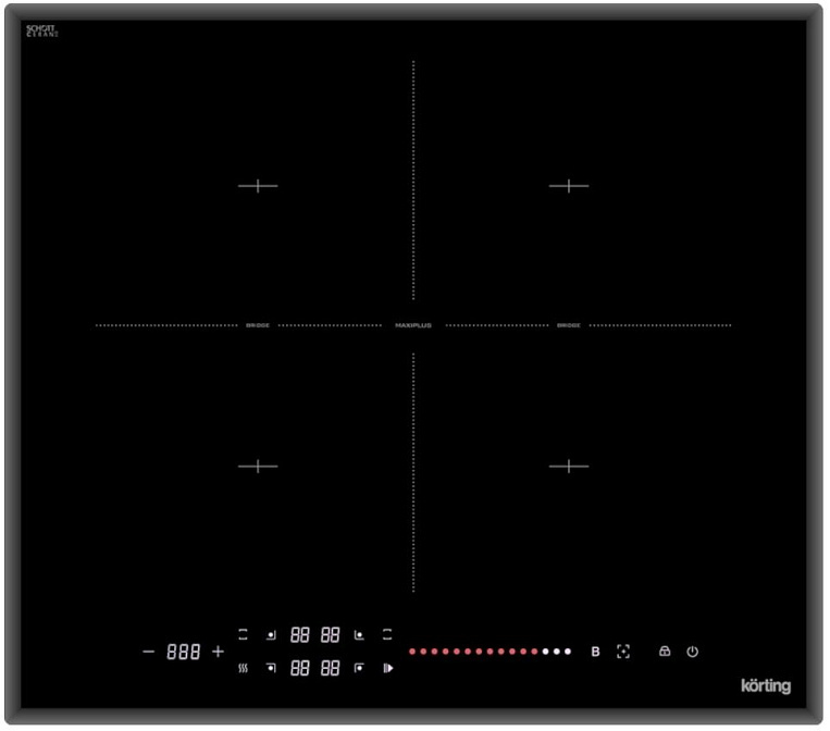 Электрическая индукционная варочная панель Korting HIB 64940 B Maxi снабжена 4 конфорками. Тип нагревательных зон — индукционные. Высота модели составляет 5.8 см, ширина — 59 см, глубина — 52 см. Материал поверхности — стеклокерамика, благодаря чему она легко очищается от жирного налета и других загрязнений. Комфортную эксплуатацию прибора гарантирует сенсорное управление. Также здесь есть таймер с отключением, защитное отключение. Основной цвет данного устройства — черный, что служит его сочетанию с кухонным интерьером в любом стиле: от современного до ретро и классики. Универсальный дизайн и независимый тип установки обеспечивают гибкие условия монтажа этой варочной панели.