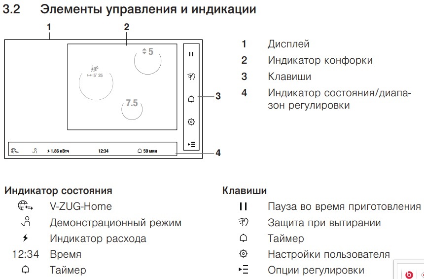 Функция восстановления настроек, Cleaning-пауза, Функция профессионального приготовления, Функция памяти, Функция плавления, Отображение даты с возможностью изменения, Переход на летнее время, Электронные часы, Уведомления с возможностью отключения, Функции: кипение на медленном огне, Технология GourmetGuide, Функция EcoManagement