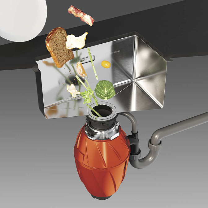Измельчитель OMOIKIRI NAGARE 500 — это современное и практичное решение для кухни. Благодаря устройству сокращается объём производимого мусора и экономно расходуется электроэнергия, так как потребляемая мощность модели составляет 375 Вт/час, что в 7 раз меньше, например, мощности фена для волос. Данный диспоузер можно установить на любой мойке из нержавеющей стали или искусственного гранита. Корпус располагается под раковиной и не занимает много места. Прибор эффективно измельчает остатки пищи, но перед начало работы необходимо ознакомиться с инструкцией, так как есть исключения для использования некоторых продуктов. Например, волокнистая структура, такая как у кукурузного початка, может привести к засору, а утилизация твердых материалов, таких как стекло и металл — к поломке.